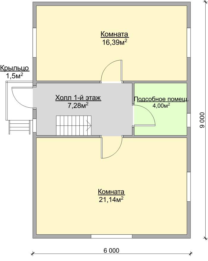 Жилой дом 6000*9000 Материал стен: Клееный брус. Фундамент: На винтовых сваях