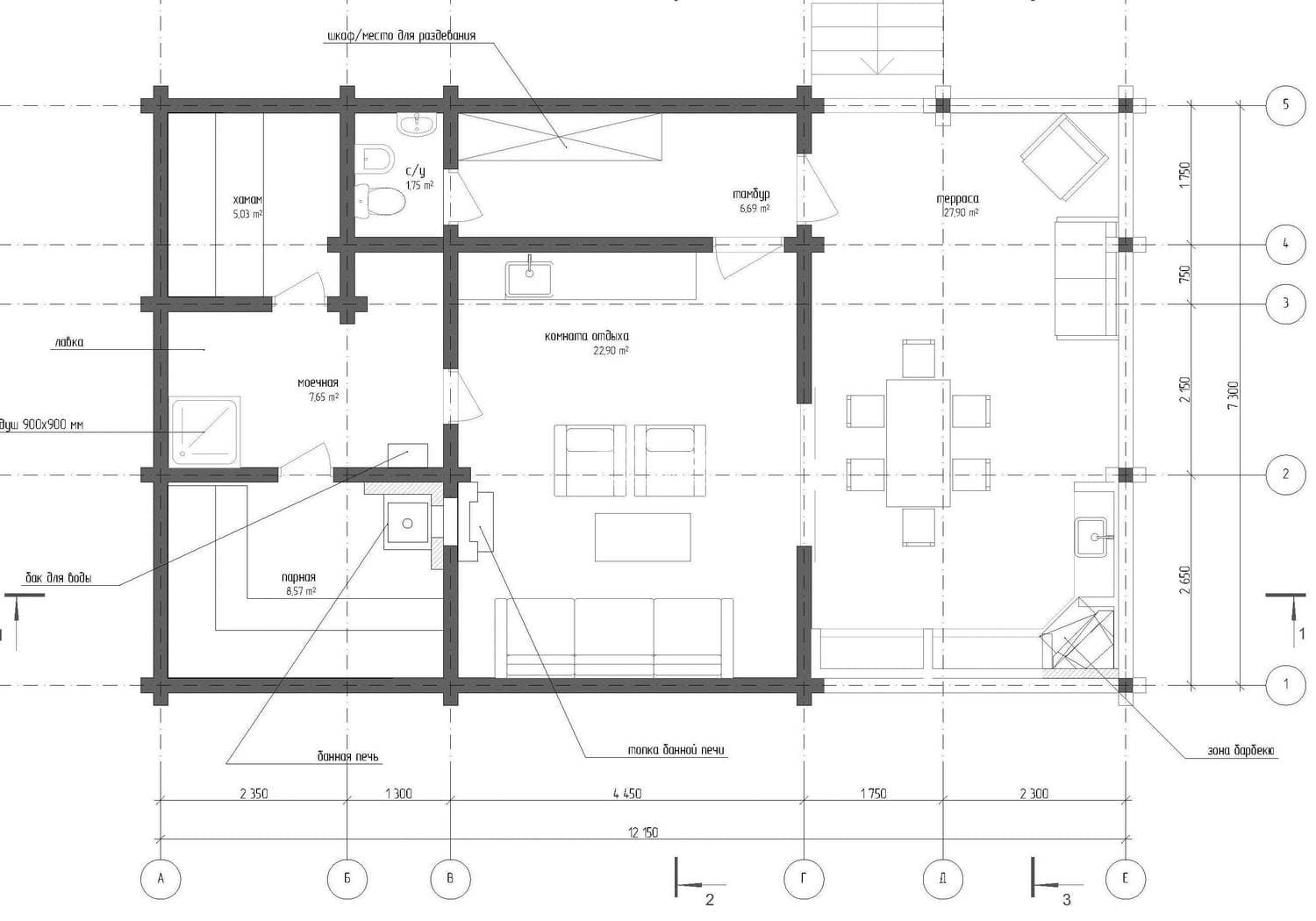Габариты12150*7300