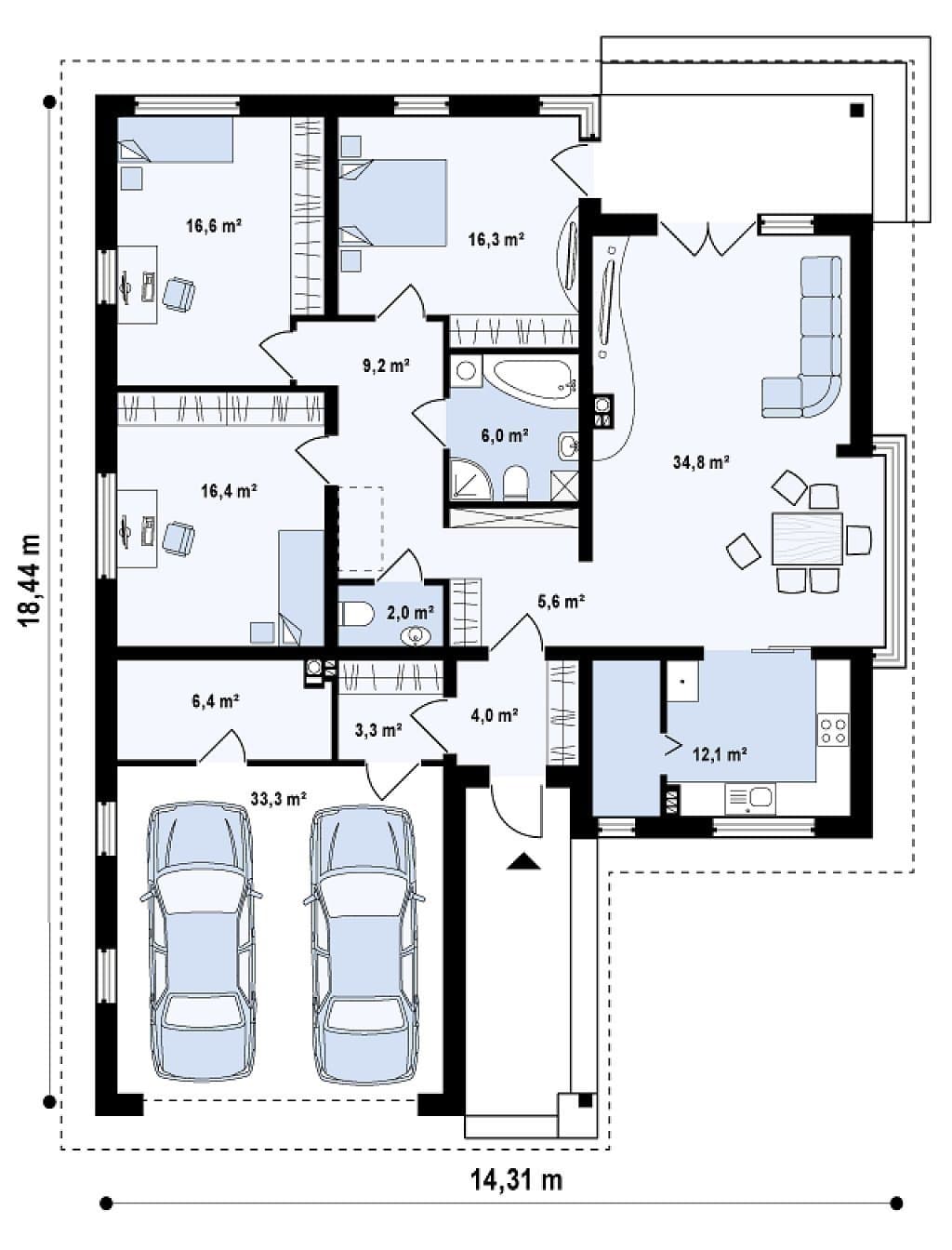 Габариты18400х14300