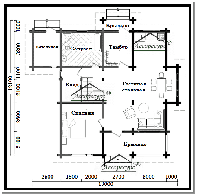 Габариты12100х13000