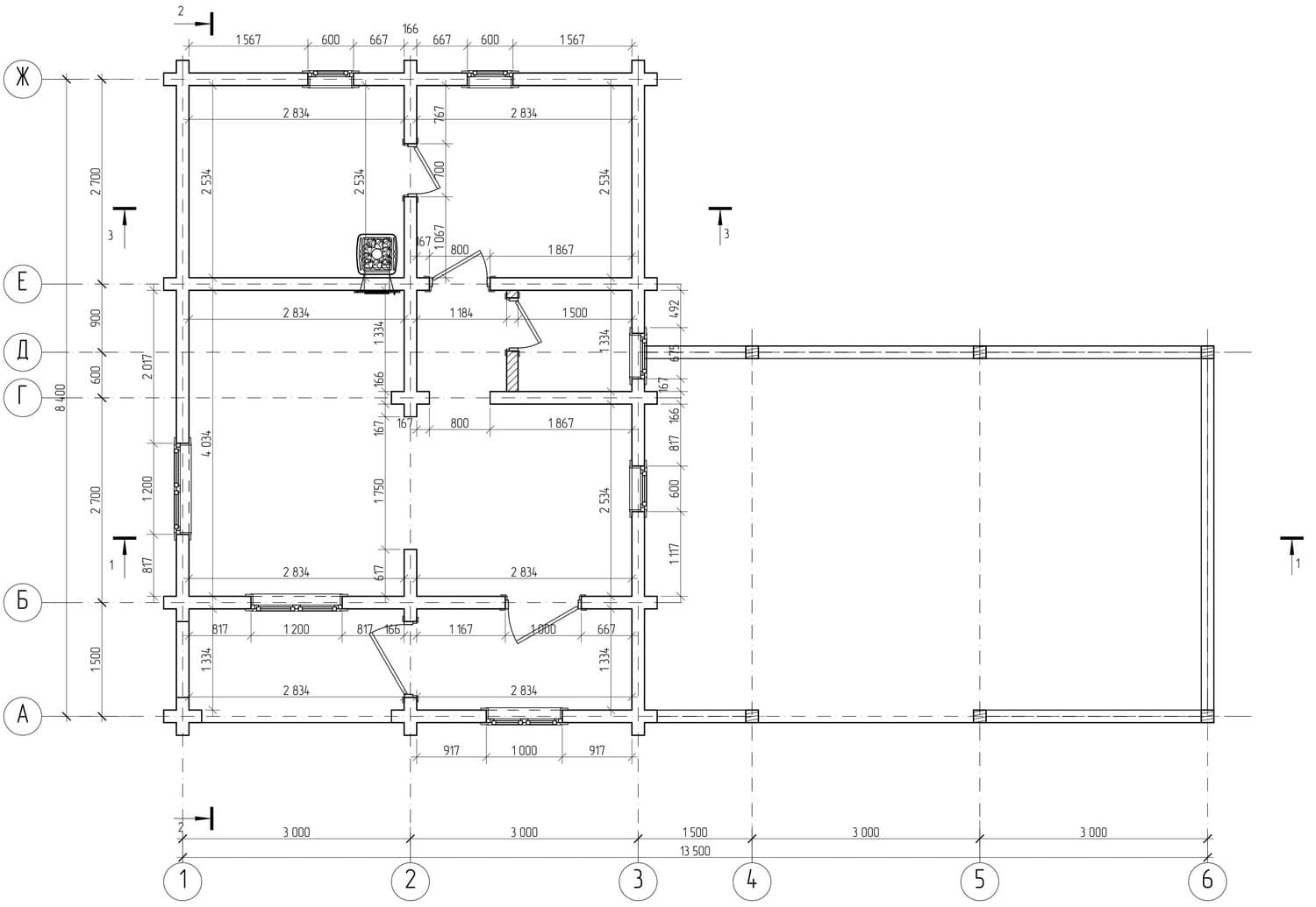 Габариты13500х8400