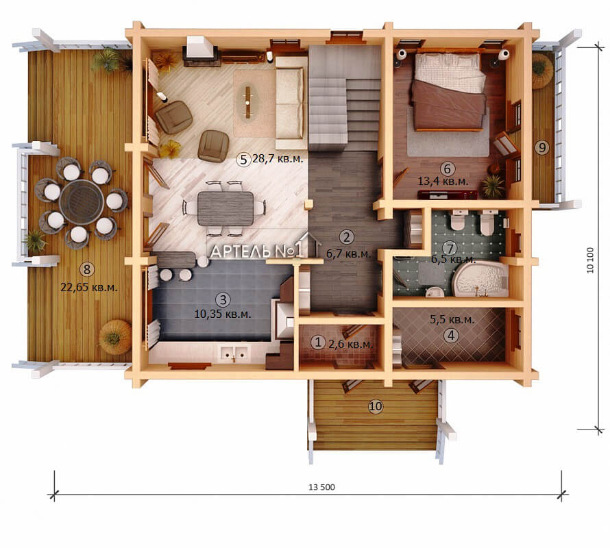Габариты13500х10100