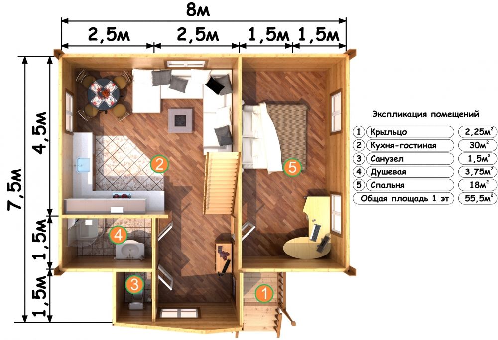 Жилой дом 8000х7500 Материал стен: Брус. Фундамент: На винтовых сваях
