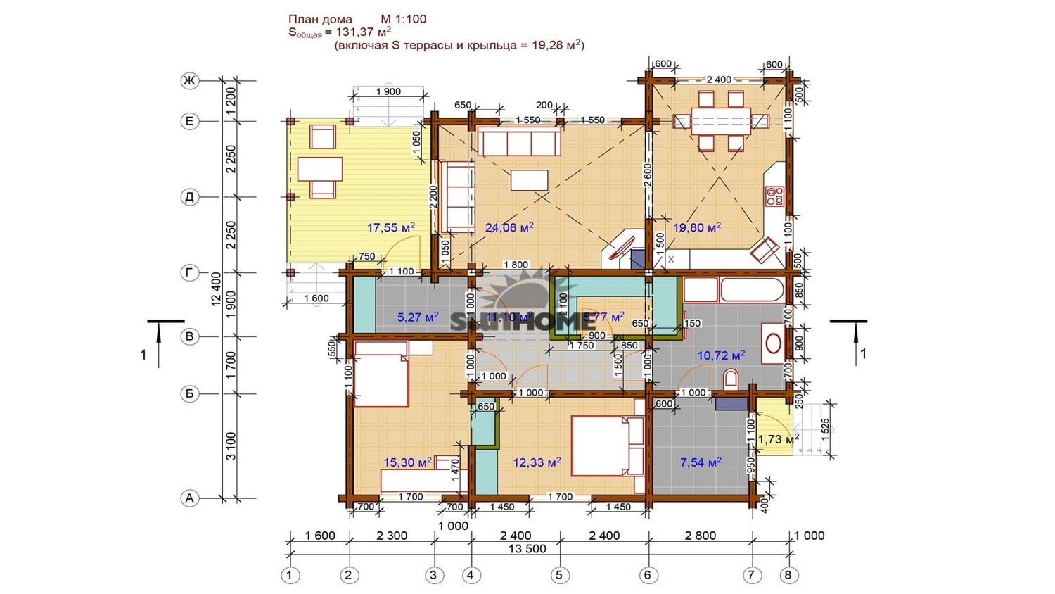 Габариты13500х12400