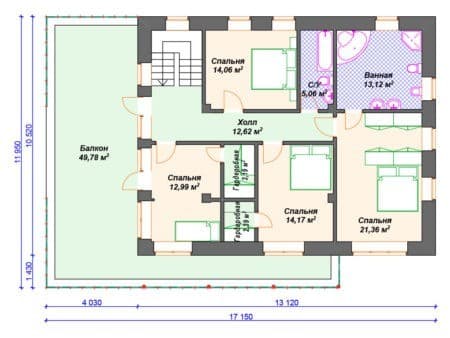 Габариты17150х13950