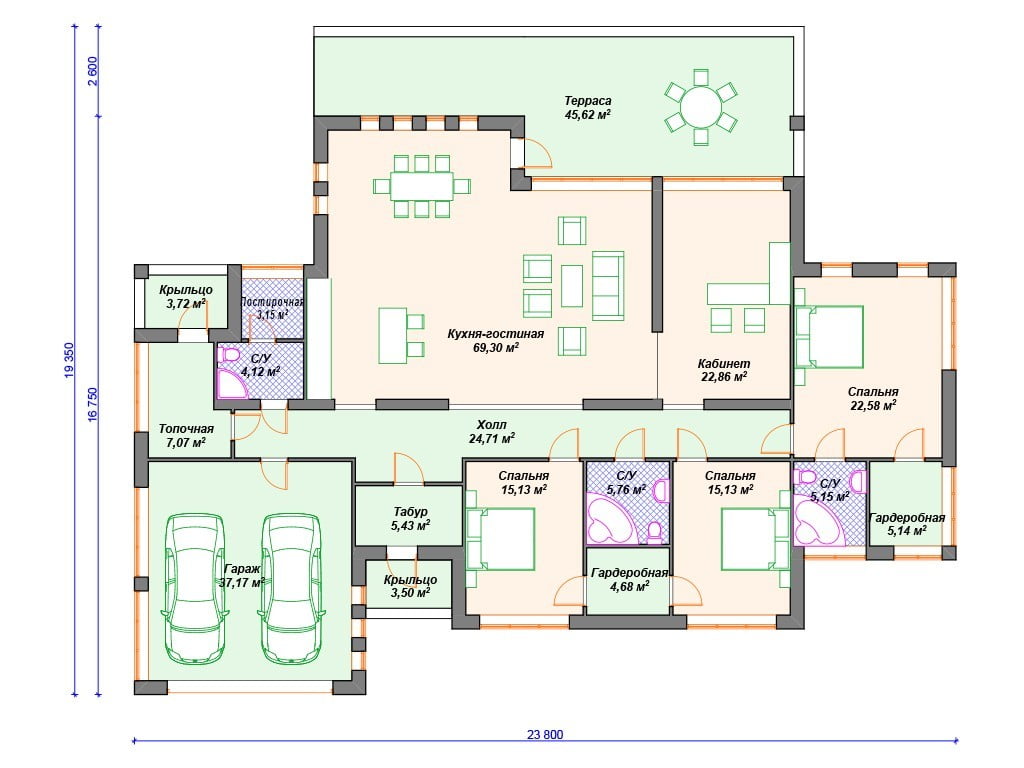 Габариты23800х19350