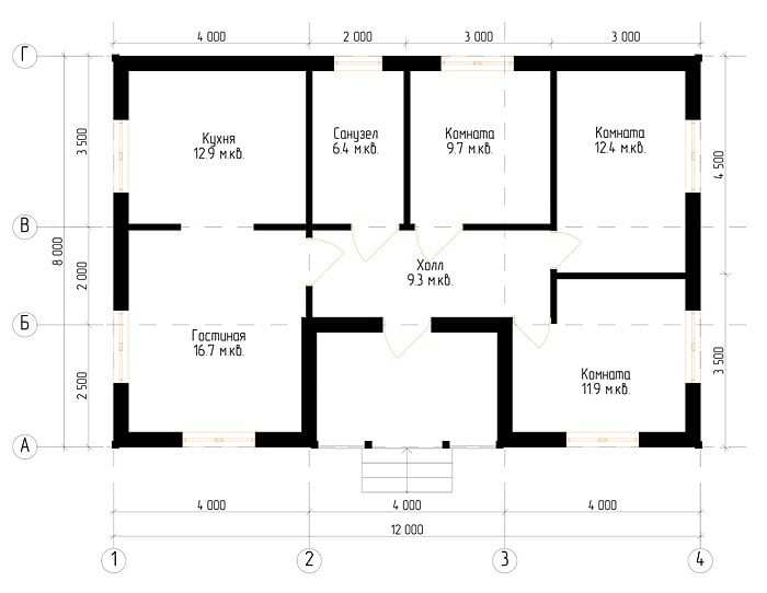 Жилой дом 12000х8000 Материал стен: Проф. брус. Фундамент: На винтовых сваях