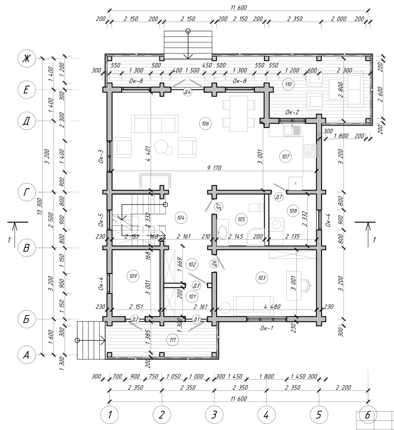 Габариты13300х11600