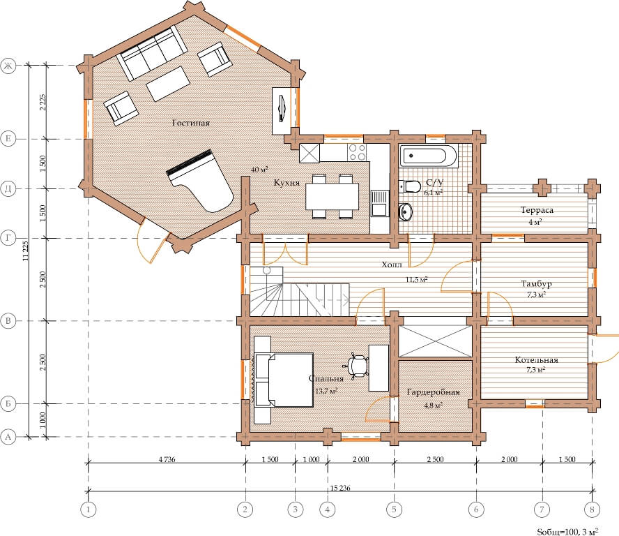 МатериалОцилиндрованное бревно