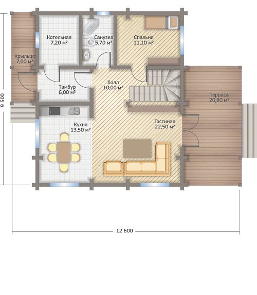 Габариты12600х9500