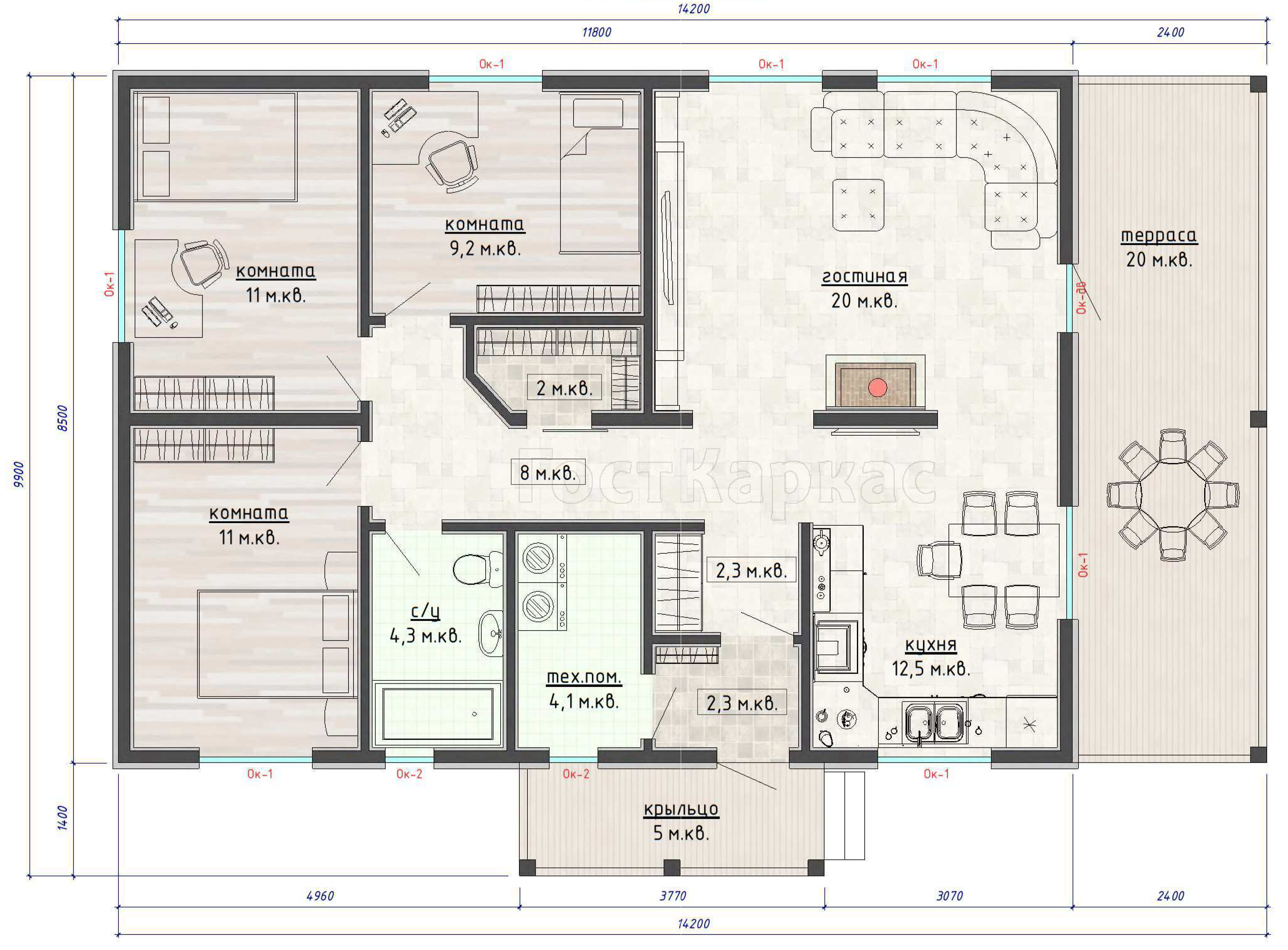 Габариты14200х9900